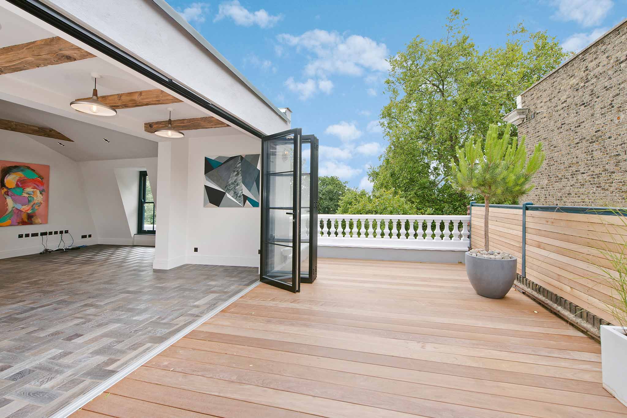 Two-storey roof extension of a Georgian Parks Residence; a re-development adding two additional stores to the existing period building accommodating three new-build contemporary apartments, including a complete top floor 1800SQF penthouse flat. Presented to exceptionally high standards and with careful consideration towards interior design throughout, this magnificent period building with private parking and roof terraces enjoys the direct panoramic views of Clapham Common; just 5 minutes from two Northern Line tube stations and a stones throw from the attractive residential enclaves of Abbeville Village and Clapham Old Town.